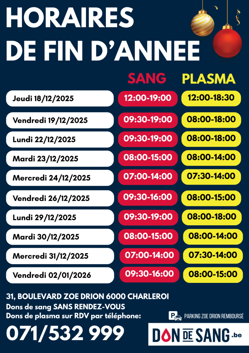 Le Don de Sang de Charleroi, assure la récolte et la distribution de sang nécessaire pour l’ensemble des hôpitaux de de la région.
